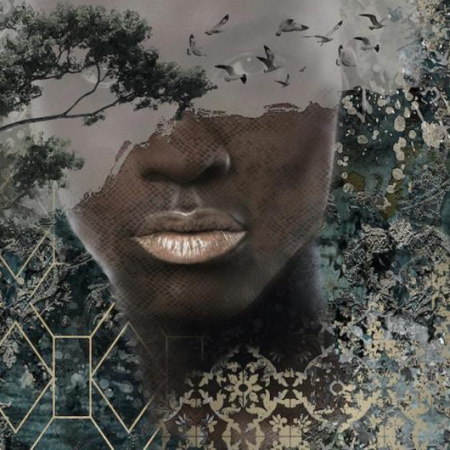 Два варианта цифровых панно, выполненных по технологии "складчатых"/"мятых" обоев с глянцевыми голографическими переливами. На одном из них изображен увеличенный стилизованный портрет самого Паписа, что является определенным симбиозом фотоискусства, дизайна настенных материалов и внесения личного вклада. А другое панно — прямое отражение энергетики западной Африки, в традиционной одежде и украшениях которой присутствует настоящее буйство красок, графических элементов и контрастных сочетаний.